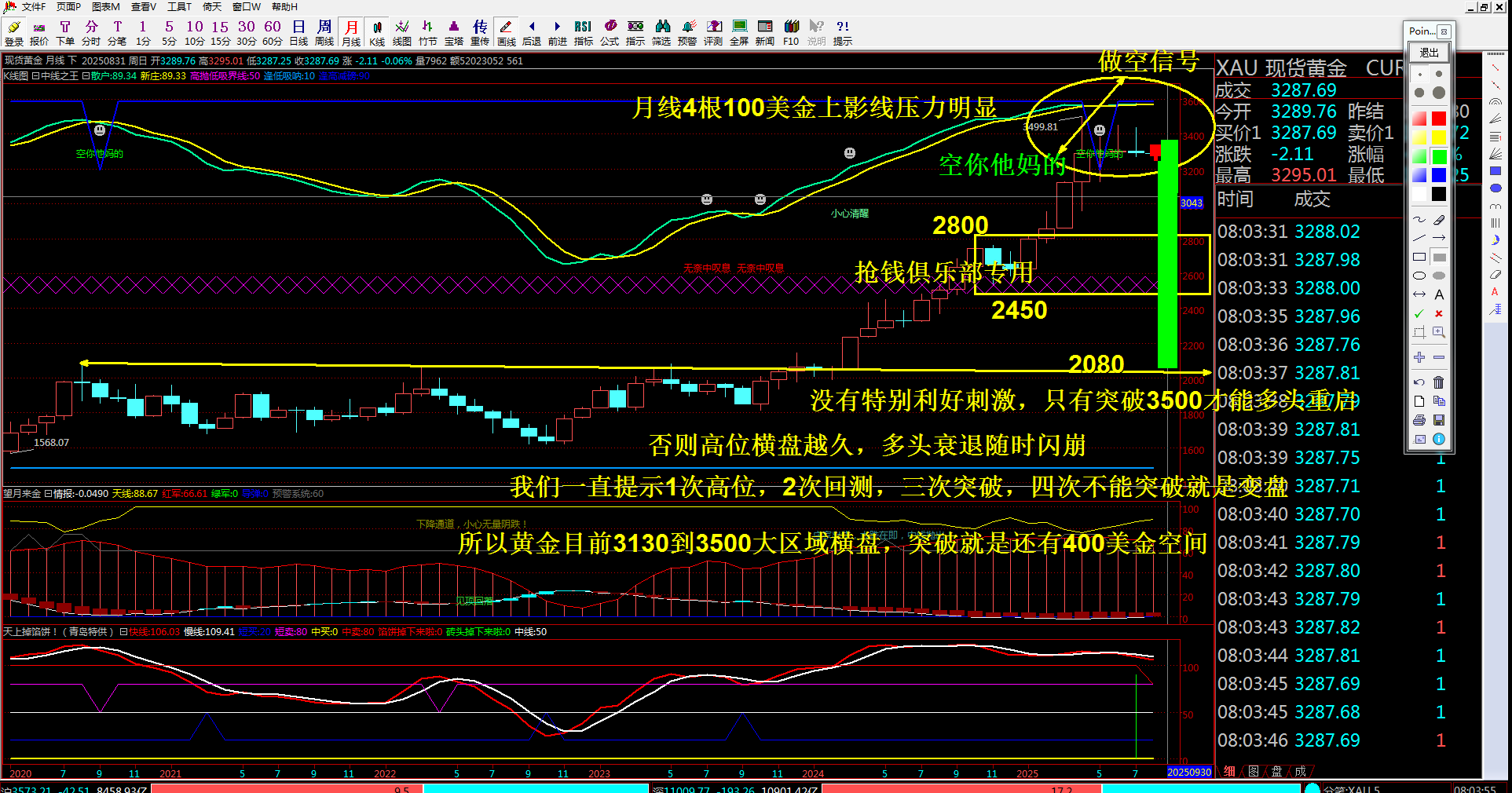 500)this.width=500 align=center hspace=10 vspace=10 rel=nofollow/月线上都没有站稳三天,说明上方压力很大,而且连续并排上影线才能打开空间,现在全球避险逐步消退,唯一支撑黄金上涨的就是降息,除非降息超预期,否则持续多头动能难以走出连续上涨,周五的美联储主席讲话,暗示九月降息预期升温,黄金跌到3320快速拉升近60美金行情,目前3365位置运行,依然没有走出大区域震荡。首先黄金大区域3250到3405震荡没有改变,最近两周波动3315到3380横盘,波动幅度逐步缩小走势,而且伴随震荡横盘半年,三角整理末端是时候变盘突破了,是继续上涨,还是变盘调整夯实支撑,目前就是关注支撑压力破位即可,伴随两周内俄乌谈判能否达成,这个才是市场避险情绪消退的关键,降息预期和俄乌谈判都是决定9月是一个宽幅震荡,一个消息随时加动幅度和力度的关键,所以目前看压力还是3380上,支撑3305破位那就是考验3250区域。早上没有延续周五上涨高开高走,那么就是防止多头主力利用消息一步到位,最近两天阴阳交替,都是一天跌然后一天涨,来回都是30到50美金行情波动,所以不要追涨杀跌,目前黄金这个降息预期能否延续,还是关注3400得失,中间关注一个3385压力即可。综合上述操作思路如下: